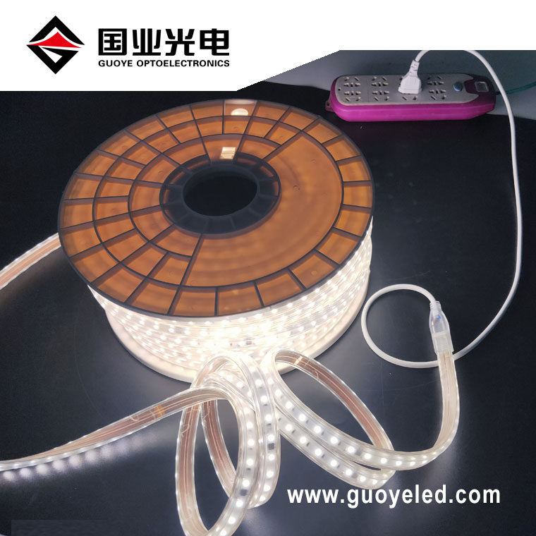 Nouveau produit de bande lumineuse LED haute tension avec une efficacité lumineuse élevée, sans entraînement, 50 mètres sans chute de tension, couverture en silicone imitation, la LED SMD est soudée à la carte de circuit imprimé flexible en utilisant la série 2835 LED SMD mise en évidence à travers plusieurs lampes, et il y a deux fils de cuivre pur, pour faire fonctionner la lumière LED à travers le cordon d'alimentation. Tous les composants de la lumière LED sont enveloppés d'un matériau en silicone respectueux de l'environnement pour répondre à la protection de la bande LED, protéger l'utilisation de la sécurité et le rôle d'isolation extérieure, imperméable et antioxydant. Le produit fini a une très bonne efficacité lumineuse jusqu'à 100-110 lm/W, la bande est coupée tous les 20 cm, peut être prolongée indéfiniment. La haute qualité peut faire plus de 3 ans de garantie, les produits via la certification CE ROHS. Bienvenue à consulter les dernières spécifications, bienvenue à acheter chez nous.