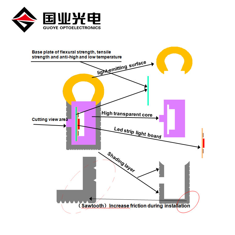 Voici le point de coupe à l'arrière de la bande de néon, il est facile à voir et il peut être coupé à partir du point.